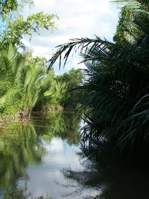 remontant la rivière pour entrer dans la « Cathédrale verte » (un