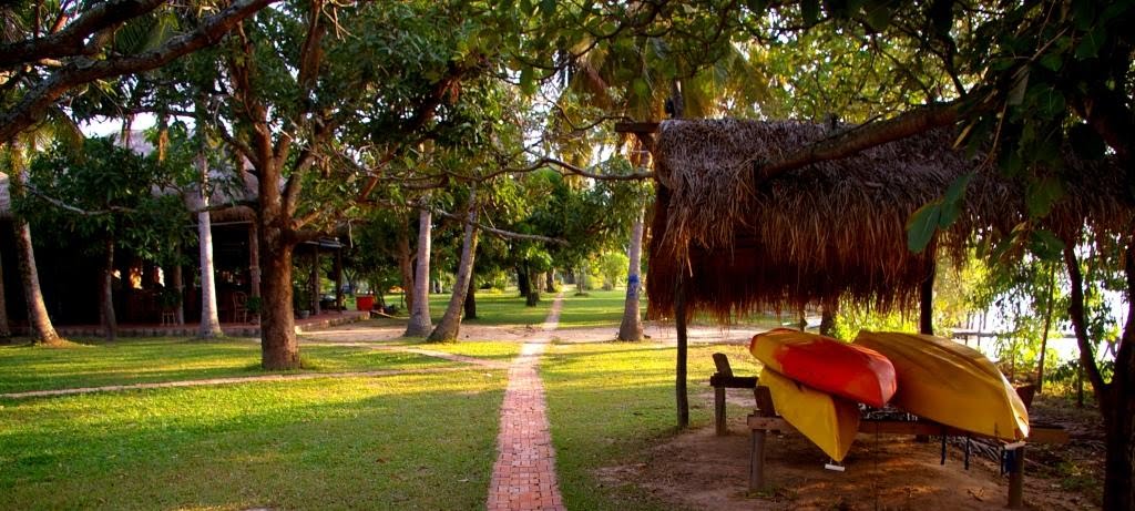impressionnante). Autres services inclus lors de votre séjour: Les facilités aux Manguiers comprennent : de nombreux vélos ; un terrain de badminton ; une table de ping-pong ; un terrain de jeux pour enfants ; accès à internet wireless et de nombreux livres à feuilleter. Ci-dessus (à gauche et à droite) --- vélos pour l’usage des hôtes ; toboggan et balançoires ; une partie de l’excursion « Cathédrale verte » en bateau. Excursions